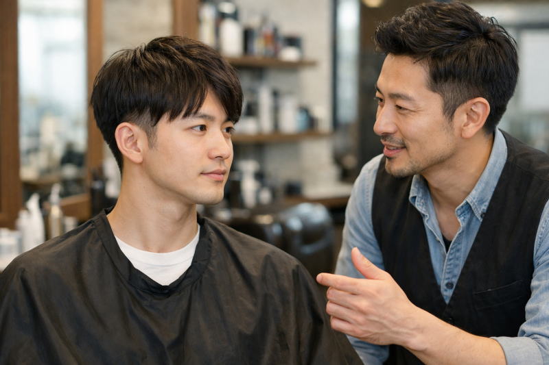 「細かく指定するのは苦手」「プロに任せたい」というメンズは、無理に長さを決め込まず、任せ方のポイントを押さえて伝えるのがおすすめです。理容師さんに任せる場合でも、「完全におまかせ」ではなく、最低限の希望を共有しておくことで、仕上がりの満足度は大きく変わります。
