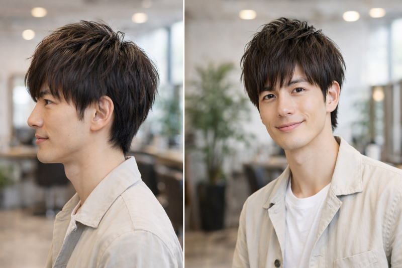軽めのマッシュは「軽さ」ばかりに意識が向きがちですが、大切なのは全体のフォルム設定です。鏡で正面だけでなく横や斜めからも確認し、立体的に整っているかをチェックすることが、理想の仕上がりにつながります。
