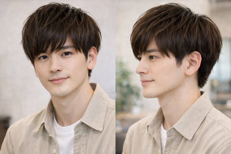 この失敗を防ぐためには、刈り上げ幅を控えめにし、「内側を軽く整理する程度」に留めることが大切です。かぶせるマッシュは、ツーブロックを強調する髪型ではなく、あくまでシルエットを整えるための土台として使う意識を持つと、バランスの良い仕上がりに近づきます。