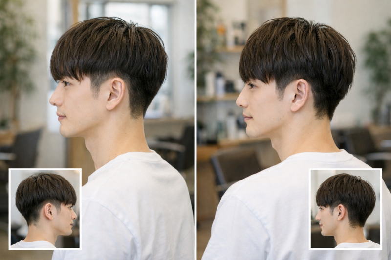 横顔での違いを意識すると、スッキリ感を重視するなら刈り上げマッシュ、ナチュラルなマッシュ感を残したいならツーブロックマッシュ、と選びやすくなるでしょう。