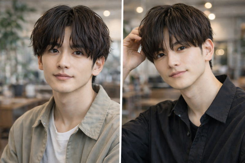 マッシュ特有の丸みを残しながら、顔まわりに適度な厚みを持たせることで、前髪の被せ具合を微調整しやすくなり、その日の気分やシーンに合わせた切り替えがしやすくなるはずです。まずは、2wayを成立させるための土台として、重さのバランスを意識したマッシュ設定を押さえておきましょう。