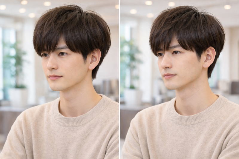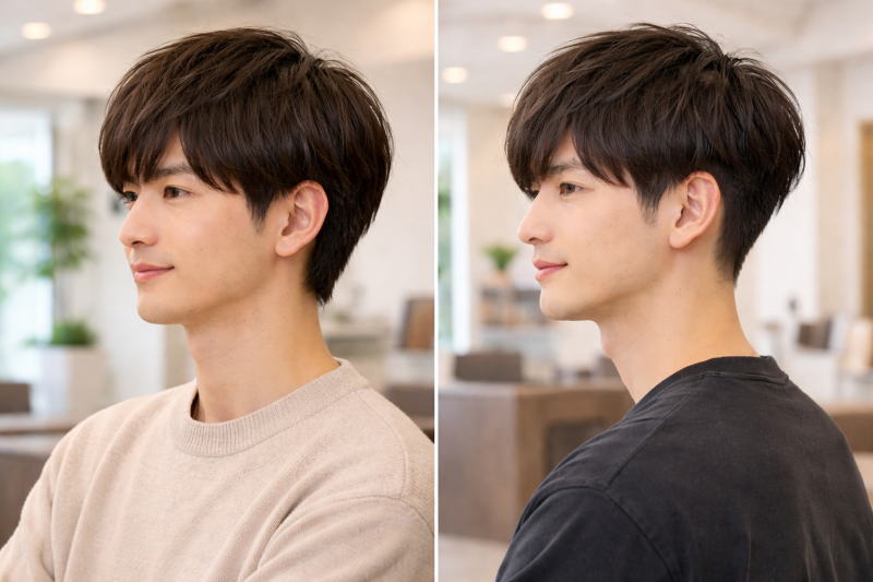 写真(髪型画像)で比較してみることで、あなたが目指したい印象が「シャープさ」なのか、それとも「柔らかさ」なのかが明確になります。美容室でオーダーするときも、こうした見え方の違いを理解しておくと、理想の刈り上げないマッシュに近づきやすくなるでしょう。
