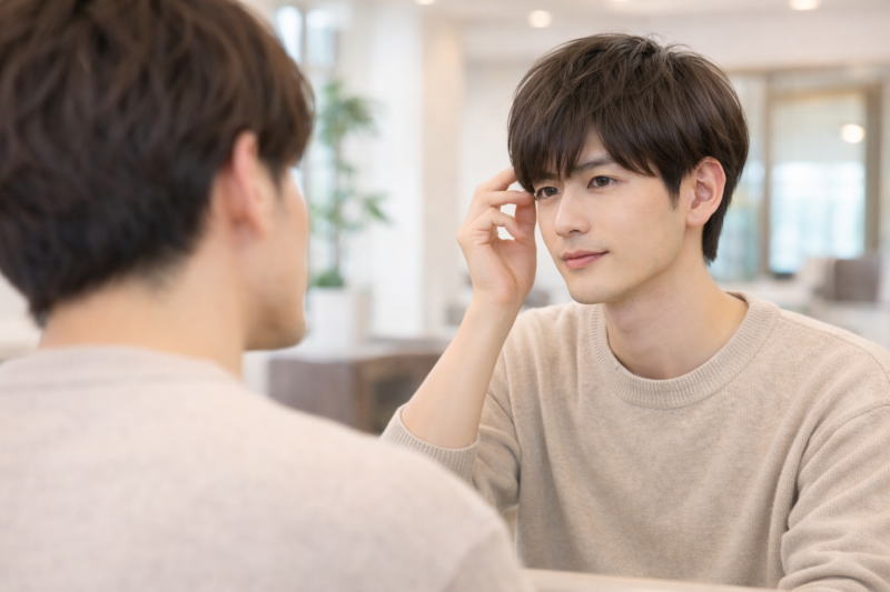 2つ目は、「伸びてきたときにどんなシルエットになりますか?」という確認です。刈り上げないマッシュは比較的なじみやすいですが、毛量や髪質によっては広がりやすいこともあります。数週間後の状態を想定しておくと安心です。