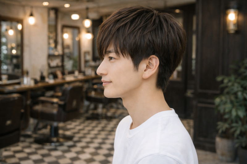 美容室でオーダーするときには、「ナチュラルマッシュで、できるだけ手入れが簡単なスタイルにしたい」と伝えるとイメージを共有しやすくなります。さらに、「サイドは広がらないように軽く整える」「トップは自然な動きが出る長さを残す」「全体の毛量を調整して重くなりすぎないようにする」といった具体的な希望を伝えると、扱いやすいスタイルに仕上がりやすくなります。