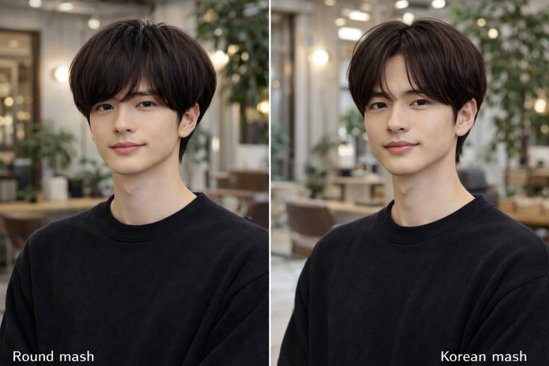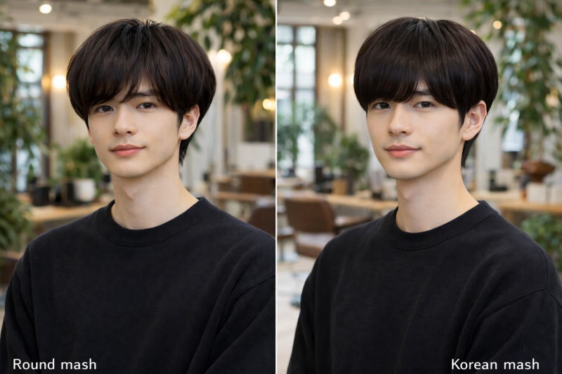 A:韓国マッシュはストレート感やツヤ感を出す必要があるため、アイロンやセットが前提になることが多いです。再現性がやや難しいため、初心者のメンズはラウンドマッシュから始める方が無難です。