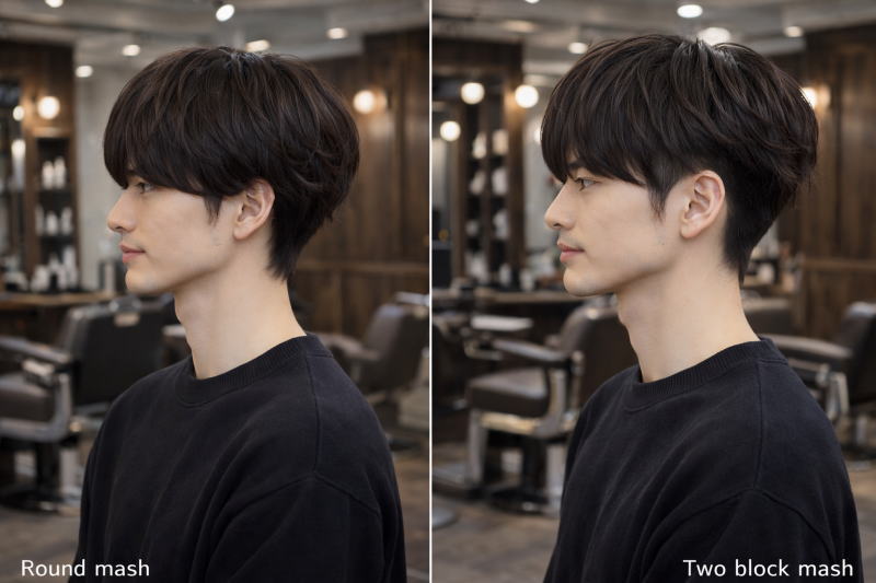この2つは同じマッシュベースでも、 シルエットと印象が大きく異なるスタイルです。
