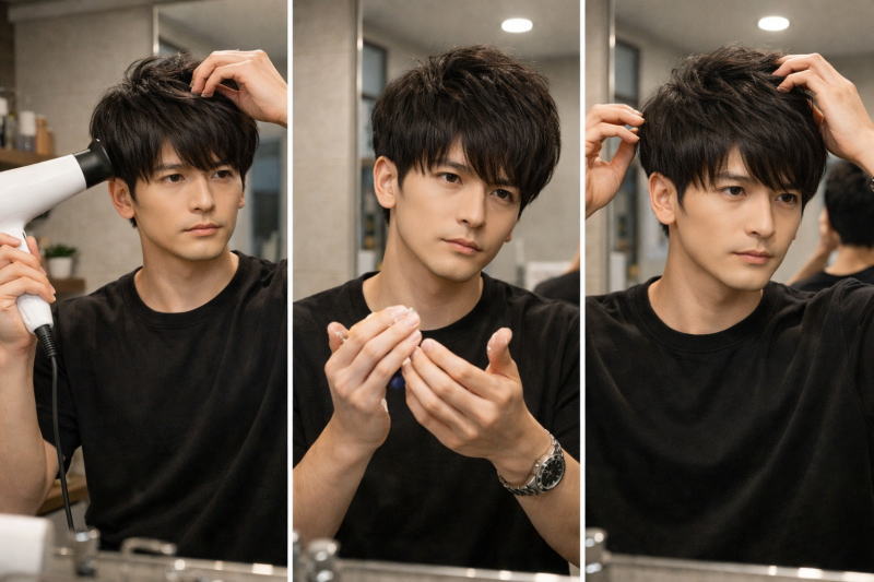 この記事では、ドライヤーだけで決める方法から、ワックスやアイロンを使ったセット、時短テクニックまで分かりやすく解説します。毎日のセットをラクにしたいメンズはぜひ参考にしてください。