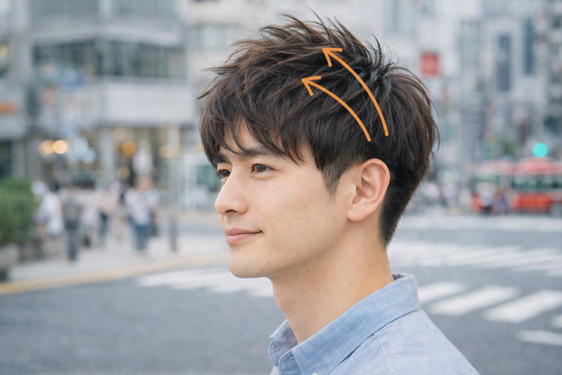 具体的には、刈り上げやツーブロックの高さを低めに設定し、トップの髪で自然に被せる形がおすすめです。これにより、横や後ろから見たときも違和感が出にくく、全体の印象が落ち着きます。