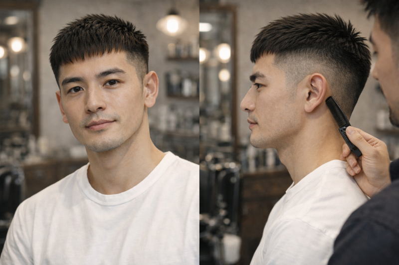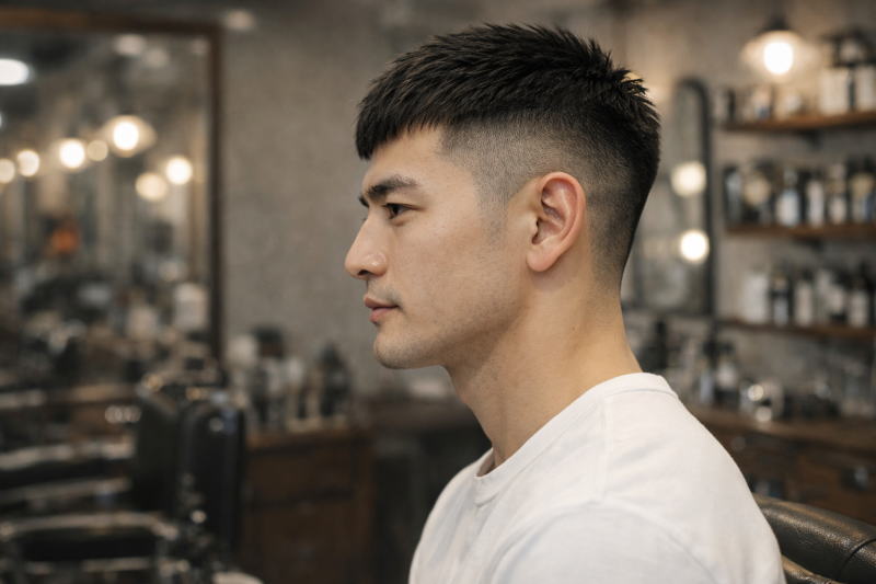 ただし、これは顔立ちが整っていないと似合わない、という意味ではありません。フェードの高さやサイドとのつながりを設定することで、輪郭の強さを和らげたり、全体の印象を整えることは十分可能です。トップが短いスタイルは、清潔感とメリハリを活かしたい人にとって、大きな武器になります。